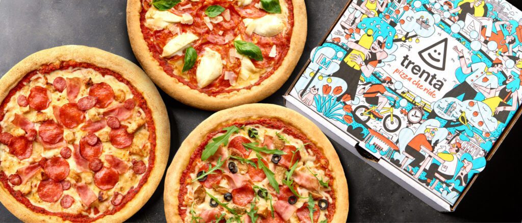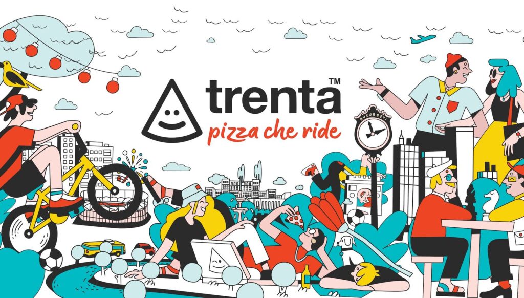 În timp, brandul a trecut de la o etapă centrată pe produs la una de proximitate și familiaritate, iar astăzi se află în etapa „Trenta Pizza che ride”, în care aduce voie bună, stare pozitivă și un zâmbet, alături de un produs de confort, gustos și constant. Felia zâmbitoare din logo nu este doar un desen, ci promisiunea că venim de fiecare dată cu bună dispoziție.