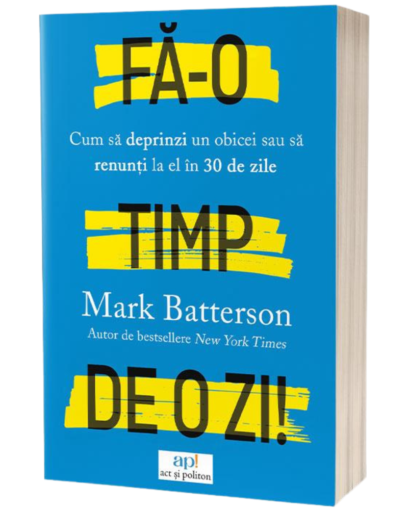 Fă-o timp de o zi!: Cum să deprinzi un obicei sau să renunți la el în 30 de zile ne oferă o abordare practică și inspirațională pentru dezvoltarea și schimbarea obiceiurilor într-un mod eficient și sustenabil. Cartea explorează arta și știința formării obiceiurilor din mai multe perspective: psihologică, neurologică și teologică. Deoarece obiceiurile simple pot avea un impact foarte mare asupra diferitelor aspecte precum sănătatea fizică, libertatea financiară, starea de bine și relațiile, autorul folosește tehnici consacrate pentru a arăta cum poți renunța la obiceiurile dăunătoare, dezvoltându-ți în același timp noi obiceiuri sănătoase.